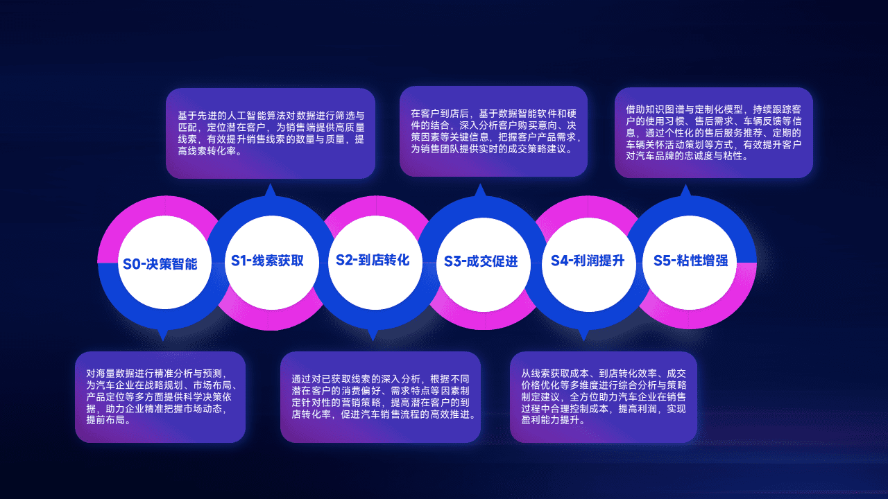 通过拓宽潜在客户来源、、、优化线索分配并提高到店转化率,,,以增强销售效率。。同时,,利用线索数据不断优化分析模型,,,有效提升转化率,,,,扩大营销影响力。。。。